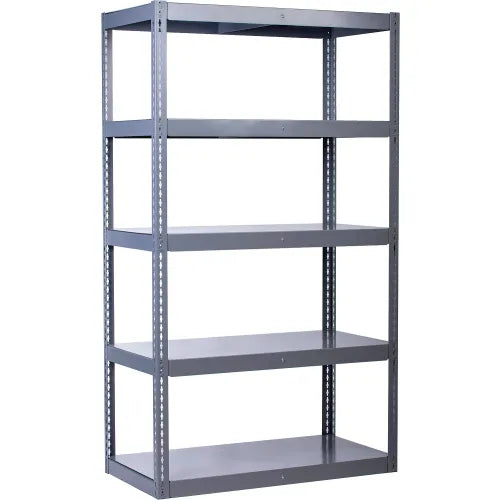 The Global Industrial™ 5-Shelf High-Capacity Boltless Shelving is more than a solid deck shelving unit with an open-spaced design. This all-steel and adjustable boltless shelving solution is essential for storing heavy motors jigs, car parts, and other hefty equipment around your warehouse. Ideal for autobody shops, manufacturing plants and warehouses. The boltless design allows easy assembly and adjustability so you can easily store, set, and organize your inventory how you need. Smooth steel surface makes placement easy compared to wood or wire shelves - simply slide items on and off. Available in a wide multitude of sizes. 1-Year Limited Warranty.